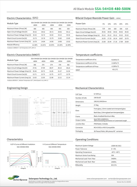Solarmodul 500W BIFAZIAL FULLBLACK, Glas/Glas, SolarSpace, Lumina 2