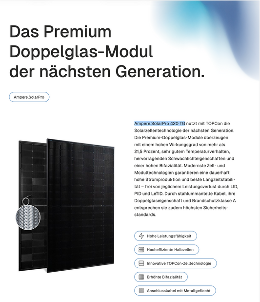 Solarmodul 420W FullBlack, Glas/Glas, Bifacial Ampere.SolarPro