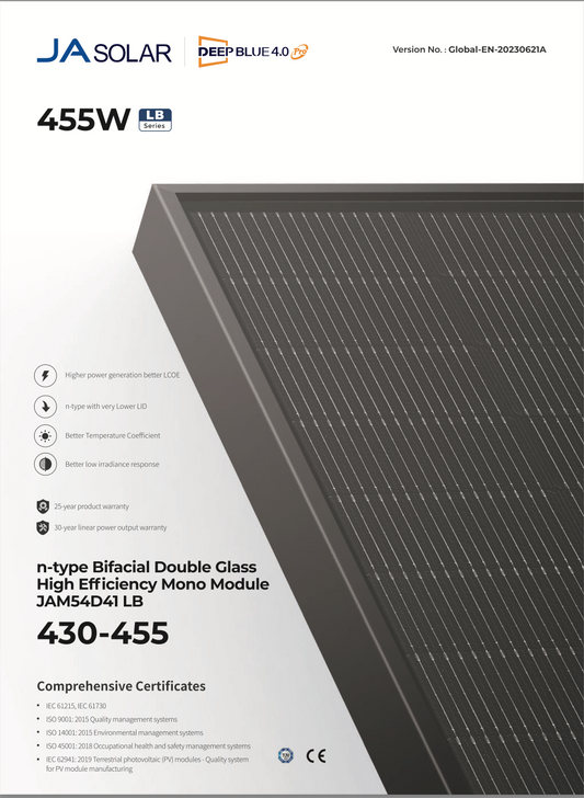 Wyprzedane WyprzedaneJASOLAR szkło/szkło 450W Czarna ramkaCena regularna €49,00Cena regularnaCena jednostkowa / na€54,00Cena promocyjna €49,00Wyprzedane