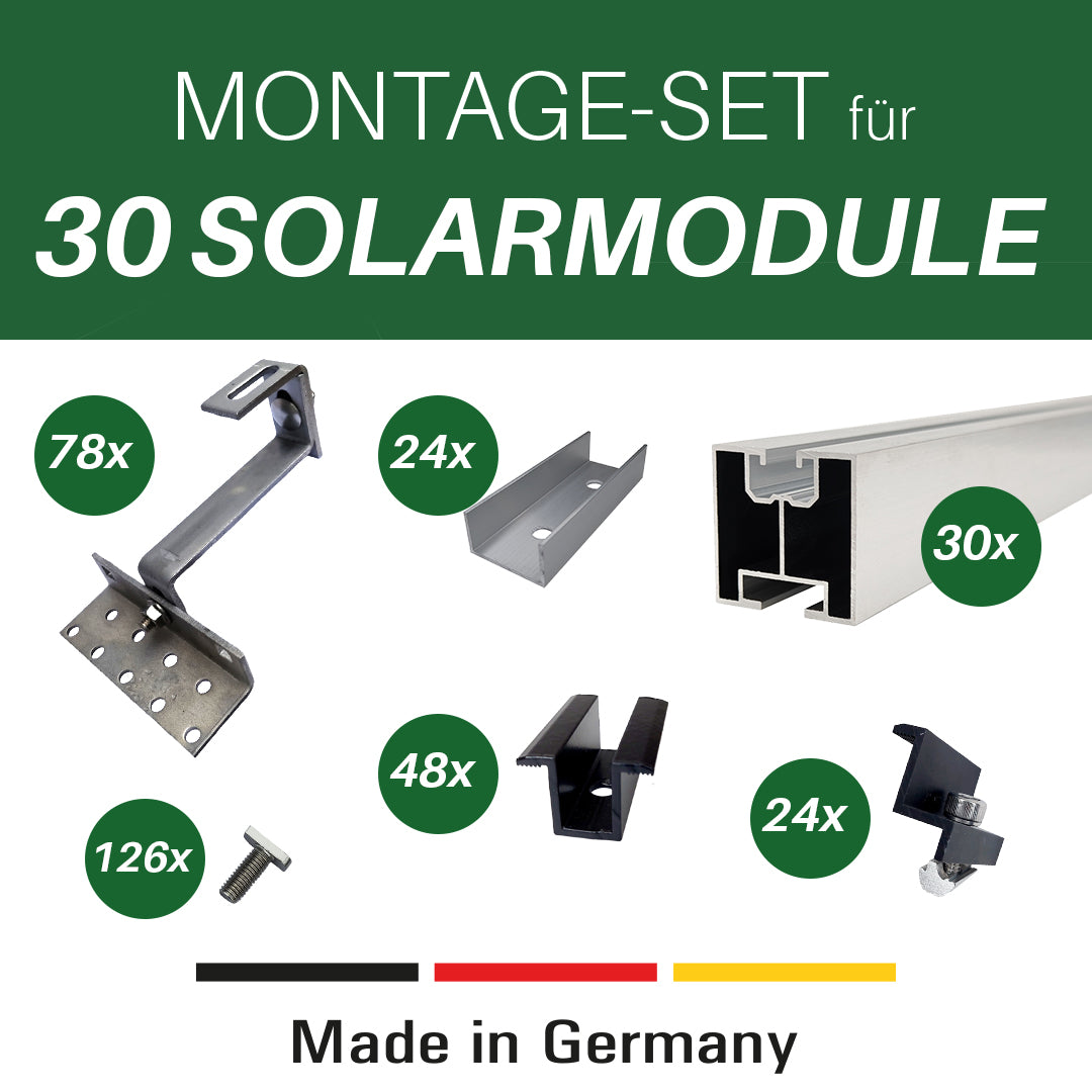 Ten zestaw do montażu 30 modułów solarnych zawiera wszystko, czego potrzebujesz. Wybierz, do którego modułu solarnego potrzebujesz zestawu.