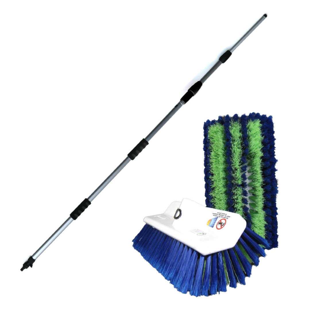 - Profesjonalna teleskopowa szczotka do mycia fotowoltaicznego wykonana z aluminium o długości do 4,0 m, z przyłączem węża 1/2" i miękkim włosiem